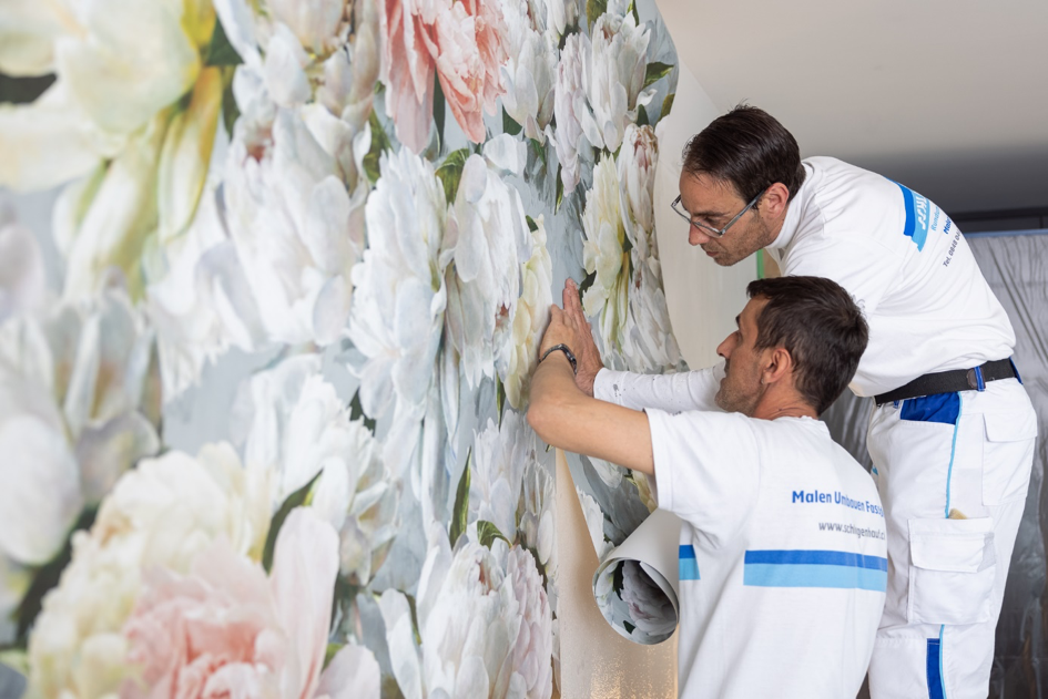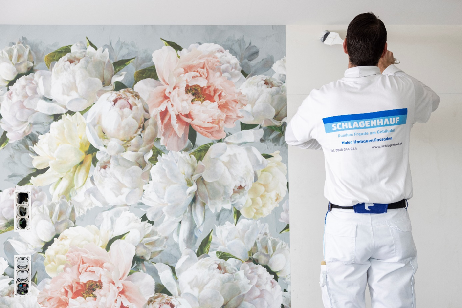 Das Team riet zu einer neuen floralen Mustertapeten, entfernte die alte Tapete fachmännisch und klebte zwölf Bahnen neue Mustertapete. Die Kundin freute sich über den neuen, frühlingshaften Look in Ihrem Schlafzimmer.