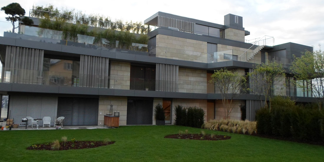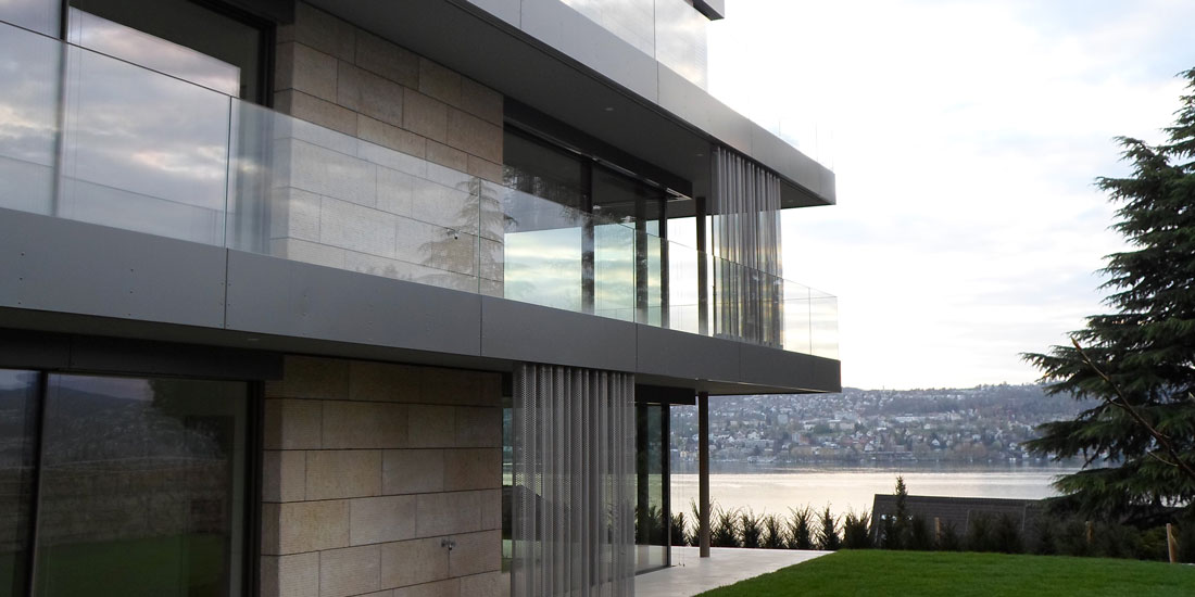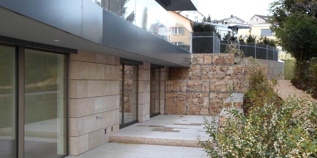 Fassadenaufbau: Glaswolle PBF Marmor, 0.032, 200 mm / Halfen Mörtelanker / Gleithülsen / Naturstein, Dietfurter KalksteinObjekt: Mehrfamilienhaus Kilchberg