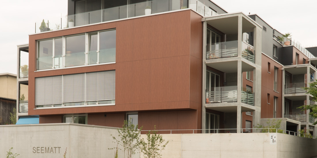 Fassadenaufbau: H-Konsole 160 mm / Tragwinkel 45/45/2.3 mm / Dämmung Mineralwolle Isover PBF 032, 160 mm / Traglatten Fi/Ta, 30x60, 30x120 mm / Fundermax m. look Exterior, Brandkennziffer 6Q3, HolzdekorObjekt: Männedorf, Seematt, Asylstrasse Bauherrschaft: Universe, A+E Ltd., Baar