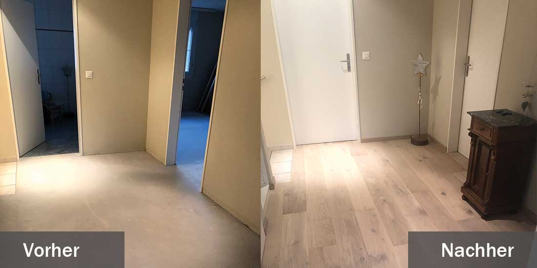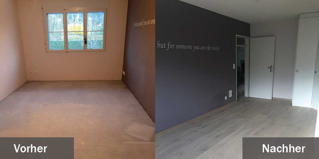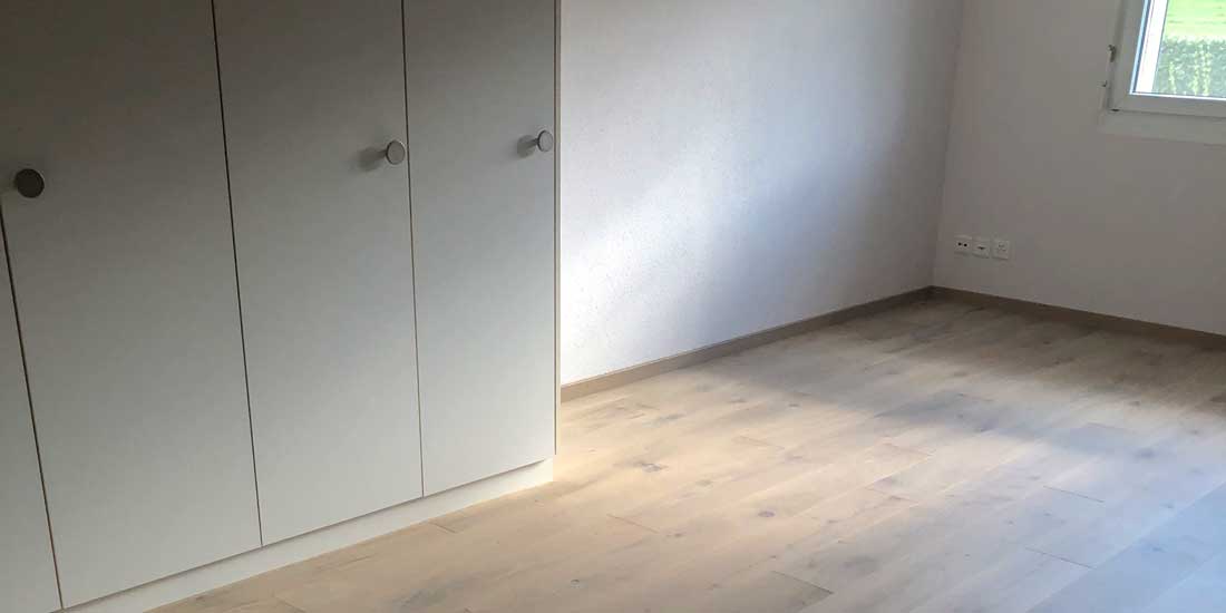 In Maur haben die Profis der Top Design AG das komplette 1. Obergeschoss eines Reiheneinfamilienhauses mit neuem Bodenbelag ausgestattet.In Maur haben die Profis der Top Design AG das komplette 1. Obergeschoss eines Reiheneinfamilienhauses mit neuem Bodenbelag ausgestattet. Die Eigentümer hatten den Wunsch, den rund zwanzigjährigen Teppichboden ersetzen zu lassen. Nach einem Beratungsgespräch in unserem Showroom in Zürich entschieden sich die Auftraggeber für eine elegante Landhausdiele Eiche Unilin. Innerhalb von drei Tagen haben wir schliesslich den alten Teppichboden entfernt und den neuen Parkett verlegt. Die Räumlichkeiten sind nun fast nicht wiederzuerkennen. Der frische Bodenbelag verleiht dem Haus mit Baujahr 1999 ein rundum neues und modernes Aussehen.