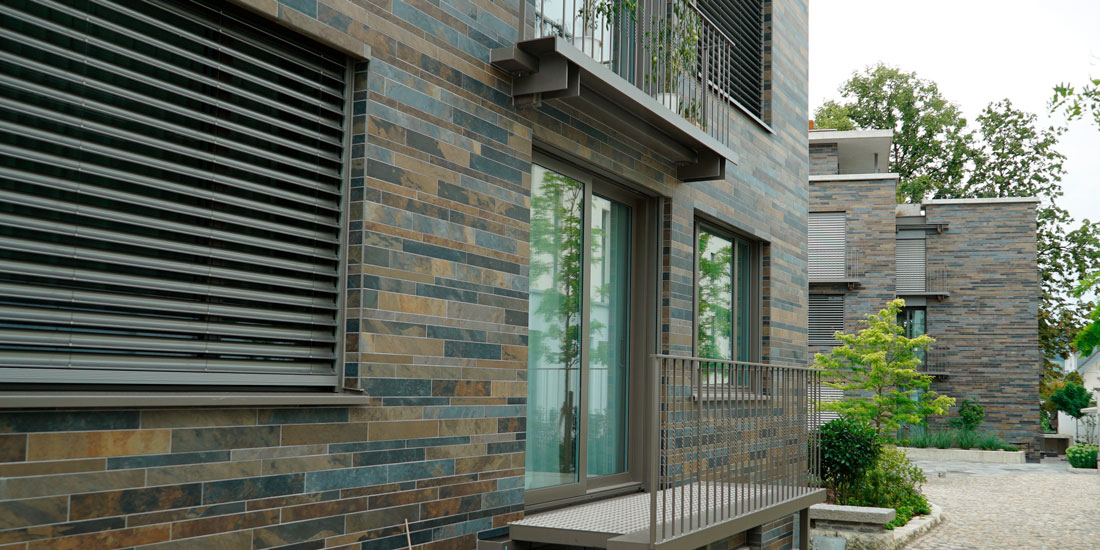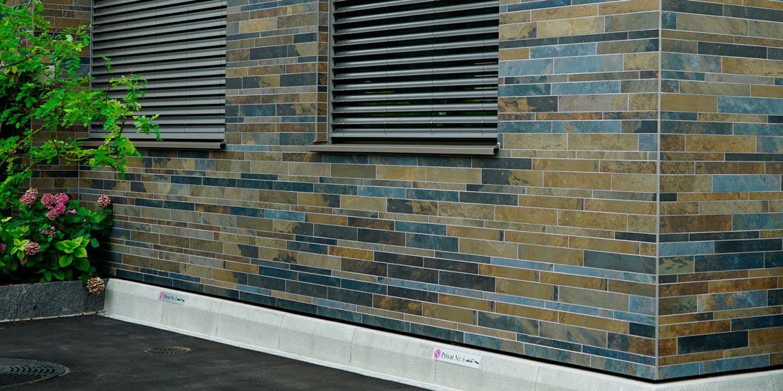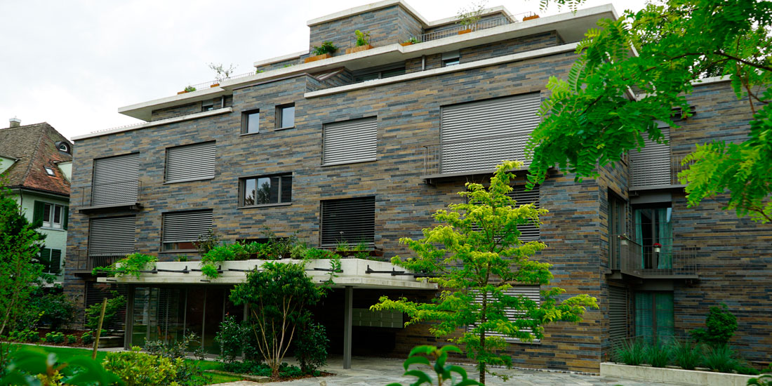 Fassadenaufbau: EPS Marmoportop, 0.030, 220 mm / Doppelte Gewebeeinbettung / STRU Dübel / Mörtel KK 70 / FST2 Typ Quarzit Ardesie RotbeigeObjekt: Ersatzbau für Liegenschaften Seestrasse 623 und Schulhausstrasse 34, Meilen
