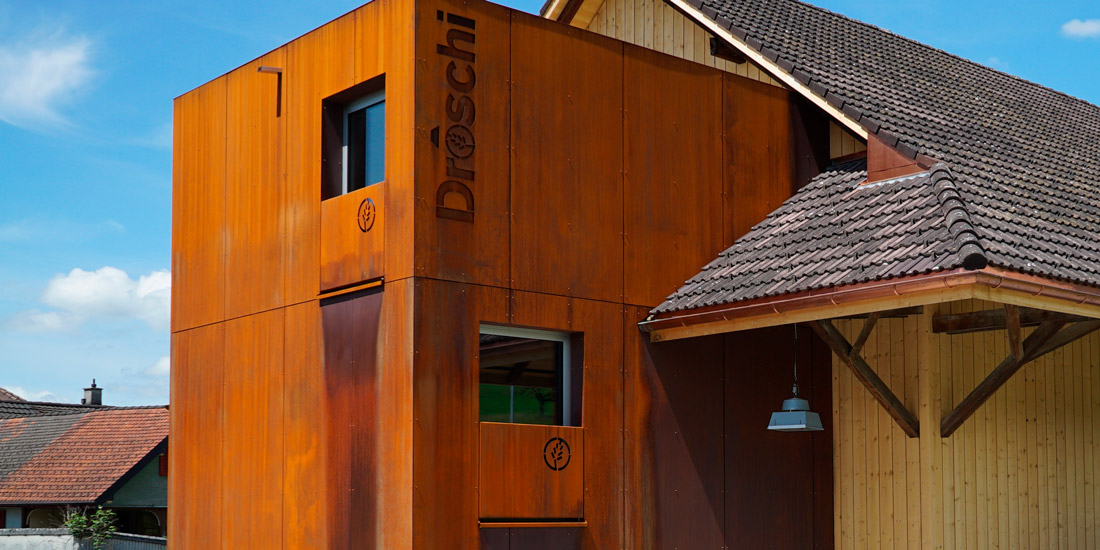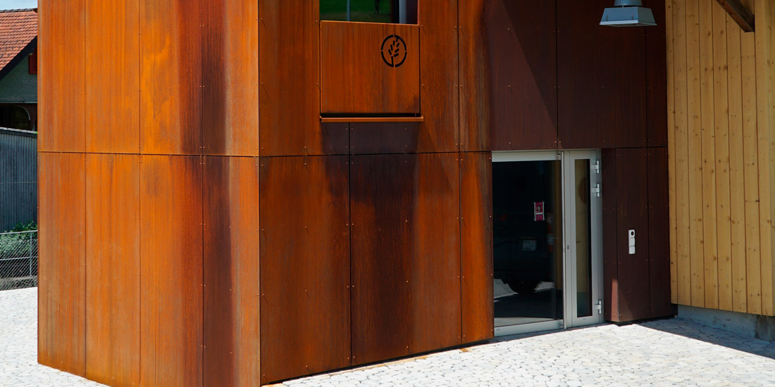 Mit Cortenstahl erhält die Hausfassade ein etwas anderes Aussehen. Durch die Witterung wandelt sich der Baustahl an der Fassade nach und nach. So entstehen einzigartige Oberflächen, die ein Gebäude zu einem echten Hingucker machen.Objekt: Kaltbrunn, Kulturzentrum Dröschi