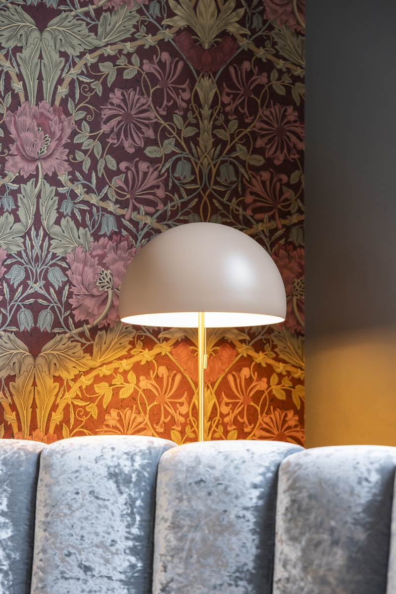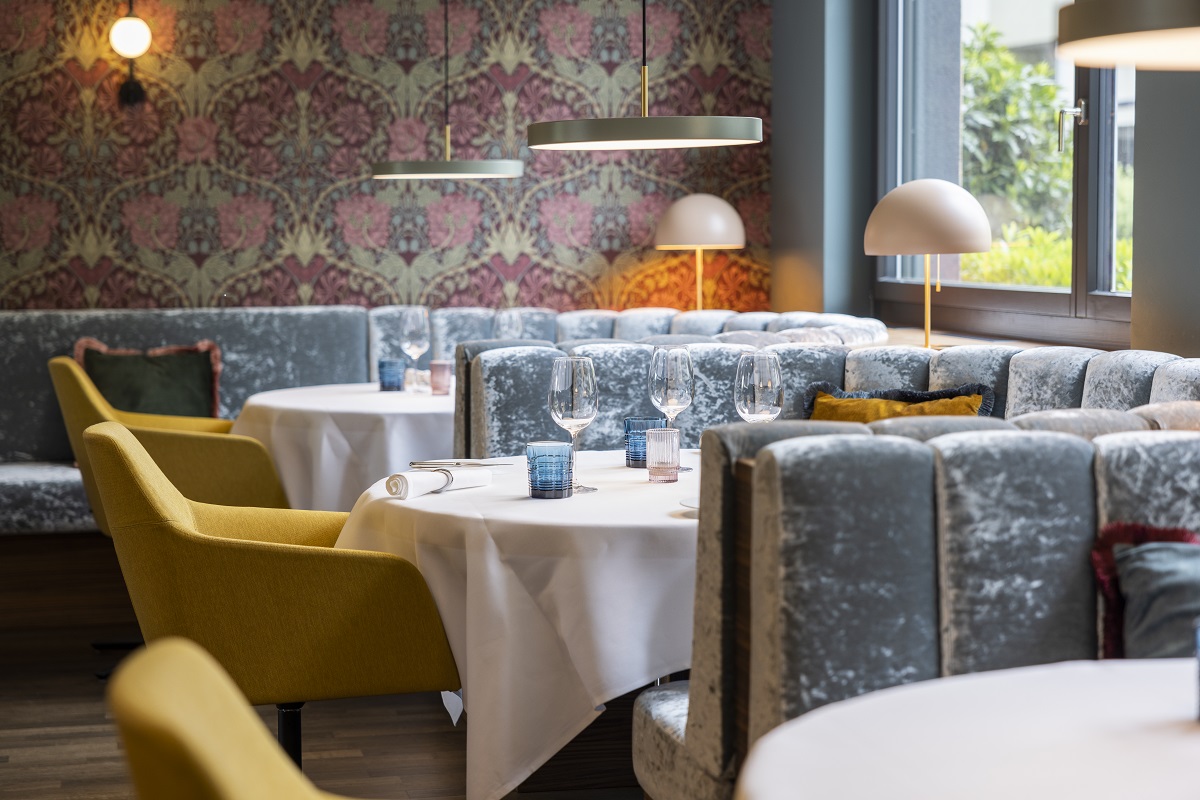 Ein besonderes Highlight war das Tapezieren mit den Mustertapeten der Marke William Morris. Diese Tapeten bringen eine klassische Eleganz mit sich und verleihen dem Restaurant eine unverwechselbare Atmosphäre.