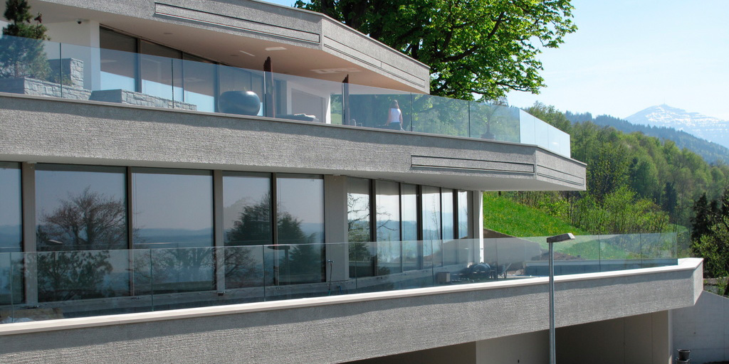 Fassadenaufbau: StoElasto als Deckputz, mit Besen strukturiert / Farbe: Stocolor Fungacryl Deckanstrich / Lasiert mit Stocolor Metallic / Dämmsystem: Stotherm classicObjekt: Zug, Im Rötel 16 Bauherrschaft: Privat