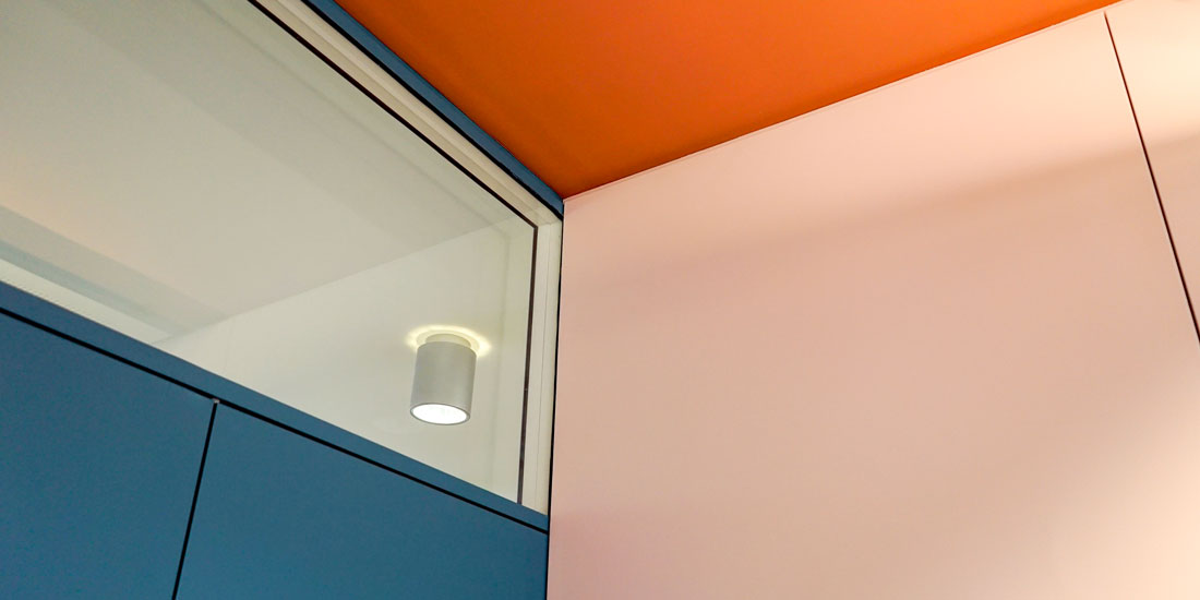 Das Farbkonzept wurde von Dr. Ines Klemm, Inhaberin des Planungs- und Beratungsbüros Latrace GmbH, entworfen. Die Farbgebung basiert auf dem von ihr entwickelten und wissenschaftlich fundierten Archiveda®-Prinzip. Dieses Zuordnungsprinzip ist ganzheitlich. Es verbindet antike asiatische Gesundheitslehren mit westlichem Design-Denken und kombiniert bewusste und unbewusste Sinneswahrnehmung. Daraus resultierend entsteht eine harmonische Mensch-Raum-Beziehung. „Ein Raum sollte Energie abgeben und nicht entziehen“, begründet Dr. Ines Klemm. Damit dies auch für die Räumlichkeiten im V-Zug-Gebäude zutrifft, wurden im Vorfeld Befragungen bei den Mitarbeitenden der Abteilung durchgeführt. Dabei wurden deren Bedürfnisse sowie deren Kraft- und Wohlfühlorte aus Natur und Freizeit eruiert. Die Ergebnisse aus der Umfrage unter Einbezug der künftigen Funktionalität des Raumes ergaben schliesslich die dezidierte Farbzuordnung. Die Farbgebung sorgt nun für ein angenehmes Arbeitsklima, das motiviert und den Teamgeist fördert sowie die Gesundheit und das persönliche Wohlbefinden steigert.